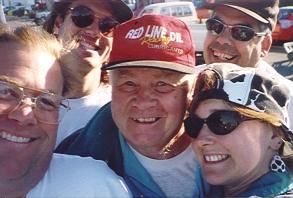 It weighed in at 799 pounds... we won't discuss the weight with driver, but we can say that car and driver combined weight is above the 900 pound minimum. The next weekend, April 24-25, was the next race at Thunderhill. All the DSR's pitted together and we had a lot of fun all weekend. I got a great group picture of all of us drivers - just ask and I'll send it out. Again, Thunderhill was pretty uneventful for us. The car continued to run well and I was getting my shifting sorted out. As soon as I came in from practice, I wrote down what I was doing with my shifting and braking points. Then I reviewed them with Bob Fox (remember - the DSR guru). We found a few turns where I could pick up some time, so I drove the track mentally, then put my notes away for review right before qualifying.
